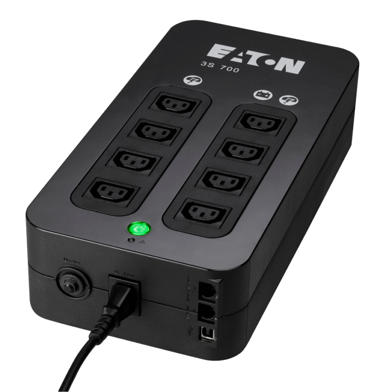 Eaton 3S UPS IEC, 700 VA, 420 W, Input: C14, Outputs: (4) C13, (4) C13 surge only, Tower