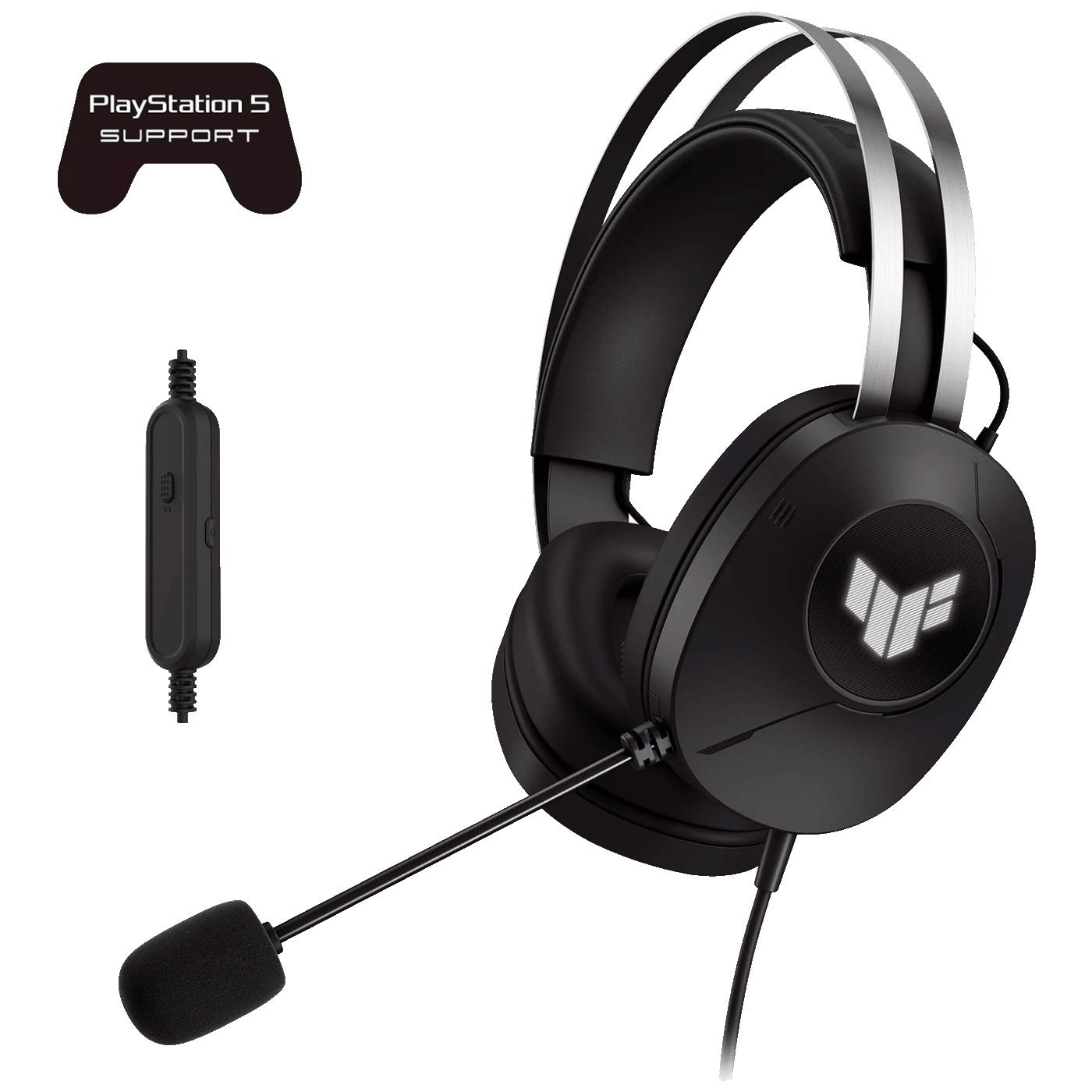 ASUS TUF Gaming H1 Gen II je žični gaming headset dizajniran za igrače koji žele uvođen audio doživljaj uz virtualni 7.1 surround zvuk i robustan dizajn. Opremljen je 40 mm ASUS Essence drajverima i zatvorenim komorama za jasne tonove i dubok bas, što doprinosi uranjajućem audio iskustvu u igrama i multimediji. Slušalice imaju TeamSpeak-certificirani unidirekcijski mikrofon koji omogućava jasnu komunikaciju u timskim igrama, dok lagana konstrukcija od 297 g i metalni ovjes s mekanim PU kožnim remenom osiguravaju udobnost i stabilnost čak i tokom dužih sesija igranja. Tu su i LED TUF logo osvjetljenje i upravljačka tipka na kablu za jednostavno podešavanje glasnoće, uključivanje/isključivanje mikrofona, surround zvuka i osvjetljenja.