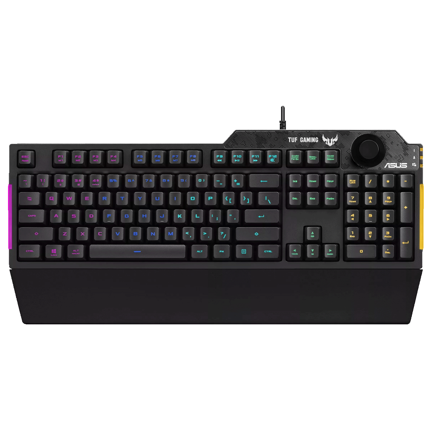 ASUS TUF Gaming K1 je svestrana i izdržljiva gaming tipkovnica koja nudi solidnu RGB osvjetljenost, preciznu taktilnu reakciju i praktične značajke poput kotačića za glasnoću i ergonomskog naslona. Otporna je na prolijevanje tekućina i pogodna je za igrače koji žele pouzdanu i prilagodljivu tipkovnicu za intenzivno igranje i svakodnevnu upotrebu.