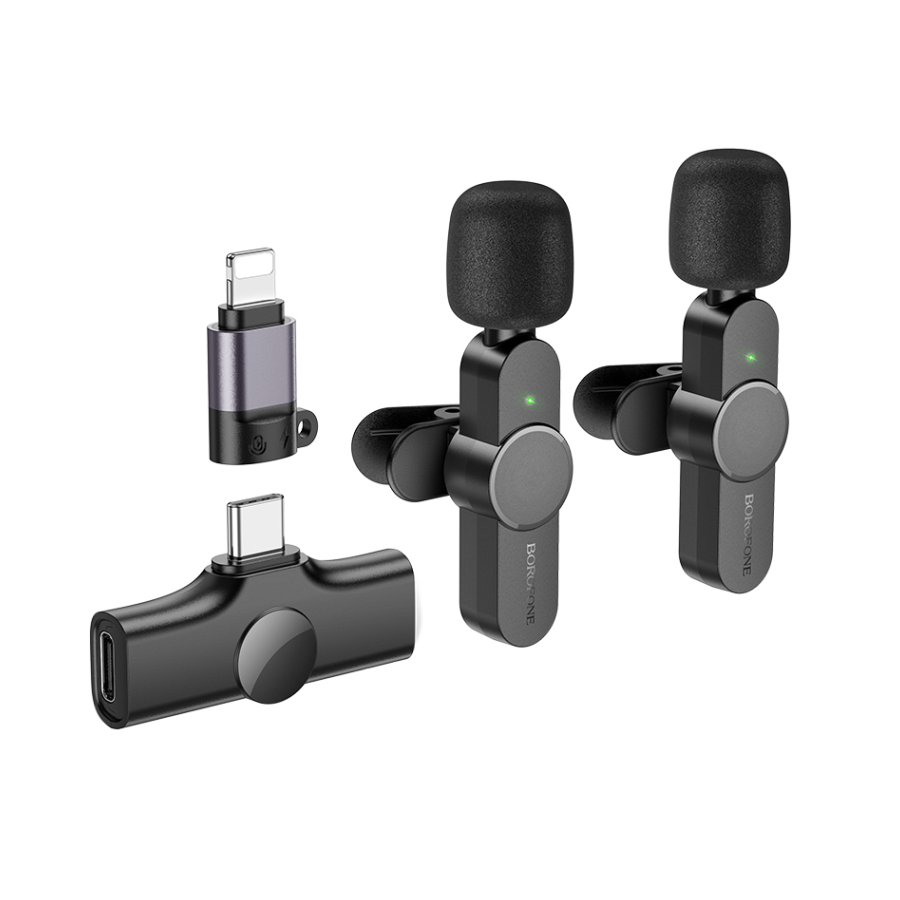 Dva mikrofona wireless iPhone/lightning Type-C BOROFONE BFK12 Trophy lavalier digital black