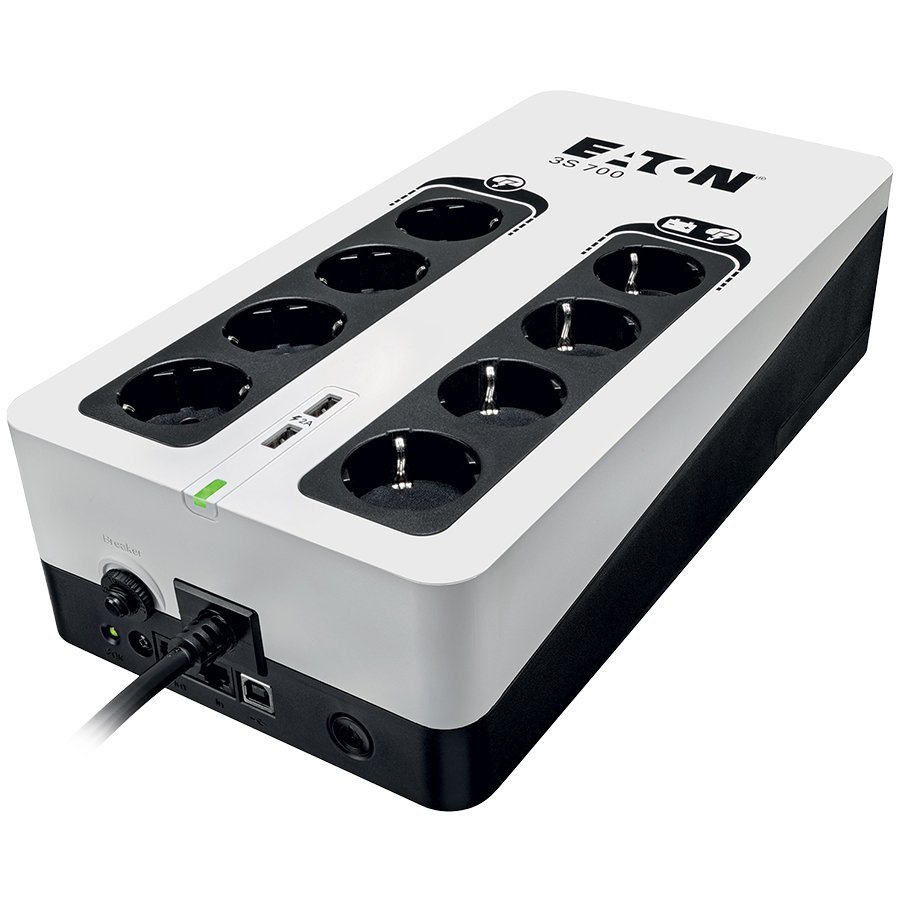 Eaton UPS 3S GEN2 Eaton 3S 700 DIN, 700VA/420W, Input: Schuko, Outputs: (4) Schuko, (4) Schuko surge only, USB Communication, USB charge (2), 4.2kg; Tower 2yr warranty