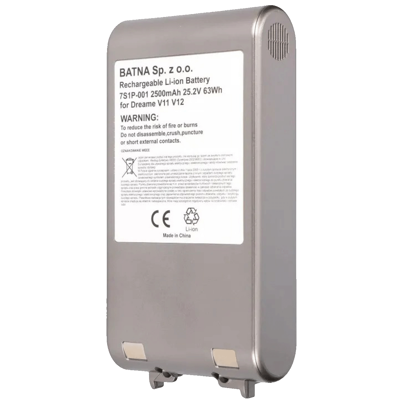 Zamjenska baterija kapaciteta 2500 mAh i napona 25.2V namijenjena je za više modela Dreame bežičnih usisavača, uključujući V11, V12, V11SE, V12 Pro i V16. Ova litij-ionska baterija pruža stabilno i pouzdano napajanje, omogućavajući optimalan rad uređaja i produženo vrijeme čišćenja.