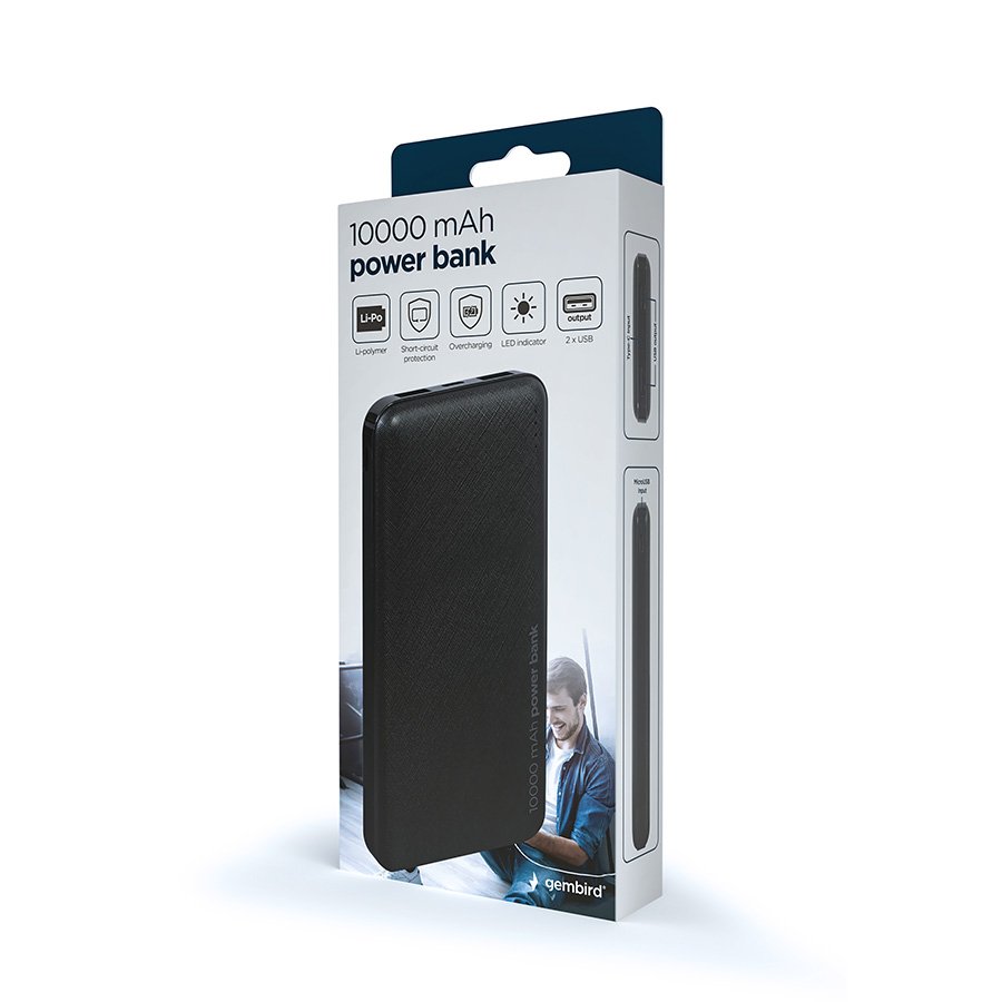 Gembird Ext.baterija 10000mAh, Powerbank, PB10-02, black