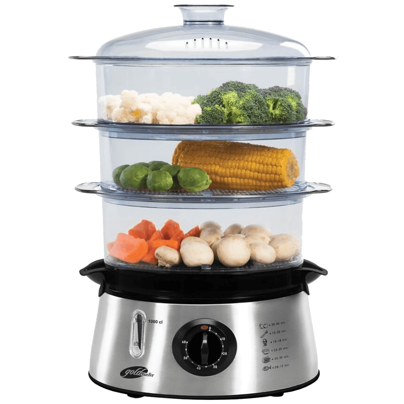 Zdrav obrok na stolu brzo i jednostavno. Sa Goldmaster aparatom za kuhanje na paru osigurali ste hranljiv i raznovrstan obrok. Zahvaljujući 3 različite posude za paru, možete pripremiti različite vrste hrane u jednom potezu.