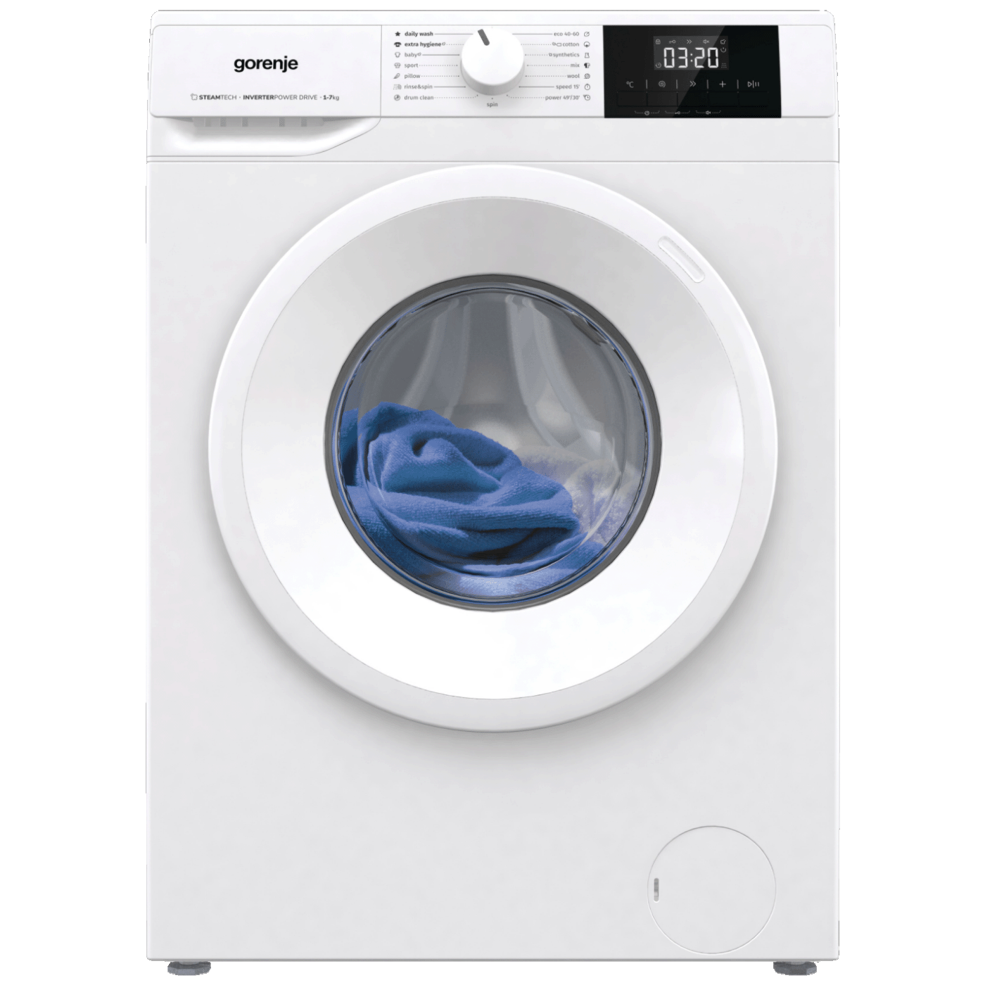Posebni programi: Power 49', ExtraHygiene – dodatna higijena, Eco 40–60, Jastuk, Brzo pranje 15', Odjeća za bebe