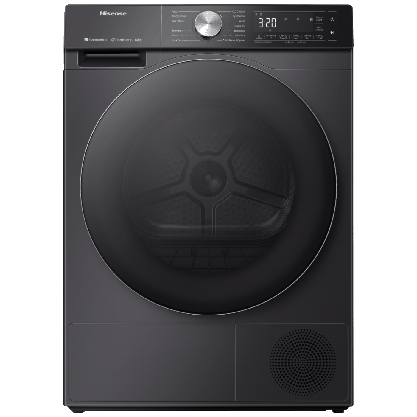 Hisense DH5S102BB HSN je samostojeća kondenzacijska mašina za sušenje veša s toplotnom pumpom i kapacitetom sušenja do 10 kg, pogodna za veće količine odjeće u kućanstvu. Ovaj model koristi inverter motor za tiši, dugotrajniji i efikasniji rad, a Auto Dry funkcija automatski prepoznaje količinu preostale vlage i podešava vrijeme sušenja kako bi se spriječilo pregrijavanje i oštećenje tkanina. Uređaj ima 17 programa sušenja uključujući specijalne cikluse poput Allergy Care, Baby Care, IonRefresh i Quick Dry 30’ za brzo sušenje lakših komada. AntiCrease funkcija smanjuje nabore na odjeći za lakše peglanje, a Flex Rack omogućava prilagodljivi prostor za sušenje različitih predmeta poput obuće ili igračaka. Sušilica se može upravljati i preko Wi-Fi veze i aplikacije ConnectLife, a LED displej jasno prikazuje preostalo vrijeme sušenja i odabrane postavke.