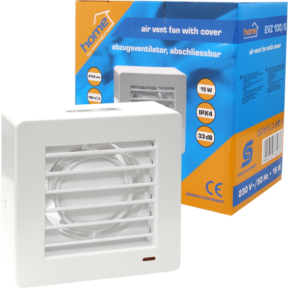 Aspirator, ugradbeni, idealan za ventilaciju prostorija, odvlaživanje i deodoraciju , tih rad 33dB, protok zraka 100 m3/h, mala potrošnja energije od 15W, napajanje 230 VAC / 50Hz, prečnik ugradbenog dijela ∅40mm, prečnik ventilatora ∅100mm, 150 x 150 dimenzije vanjske maske