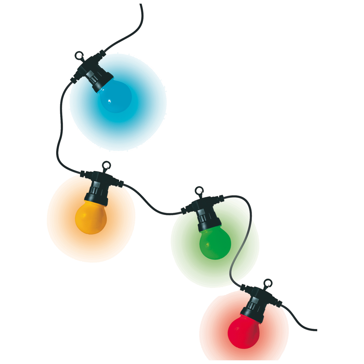 Dekorativna LED rasvjeta , 30 x plastičnih LED žarulja na kabelu dužine 4.5 met., kolor ( RGB )svjetlosti, napajanje 230V / 24 C adapter, dužina napojnog kabela 5 met., za vanjsku i unutarnju uporabu