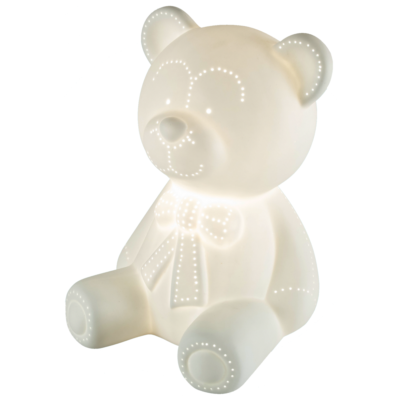 Dekorativna LED rasvjeta, medvjedić, materijal izrade porculan, izvor svjetlosti žarulja E14, max 60W ( žarulja nije uključena u pakiranje ), napajanje 230V / 50Hz, dužina napojnog kabela 165 cm, dimenzije 180 x 245 x 180 mm