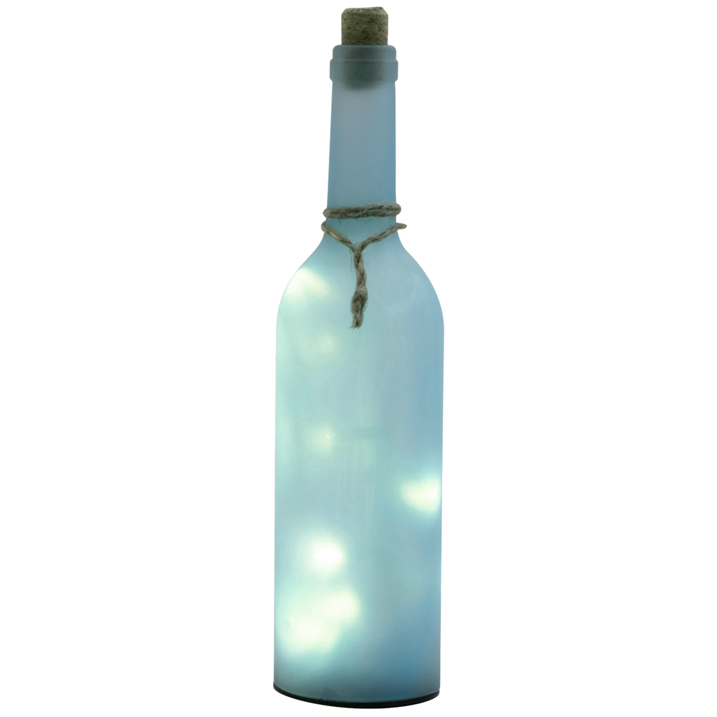 Dekorativna staklena boca, boca mat plava boje, unutarnja LED svjetlost, 10 lampica, boja toplo bijela, napajanje 3 x 1,5V AAA baterije