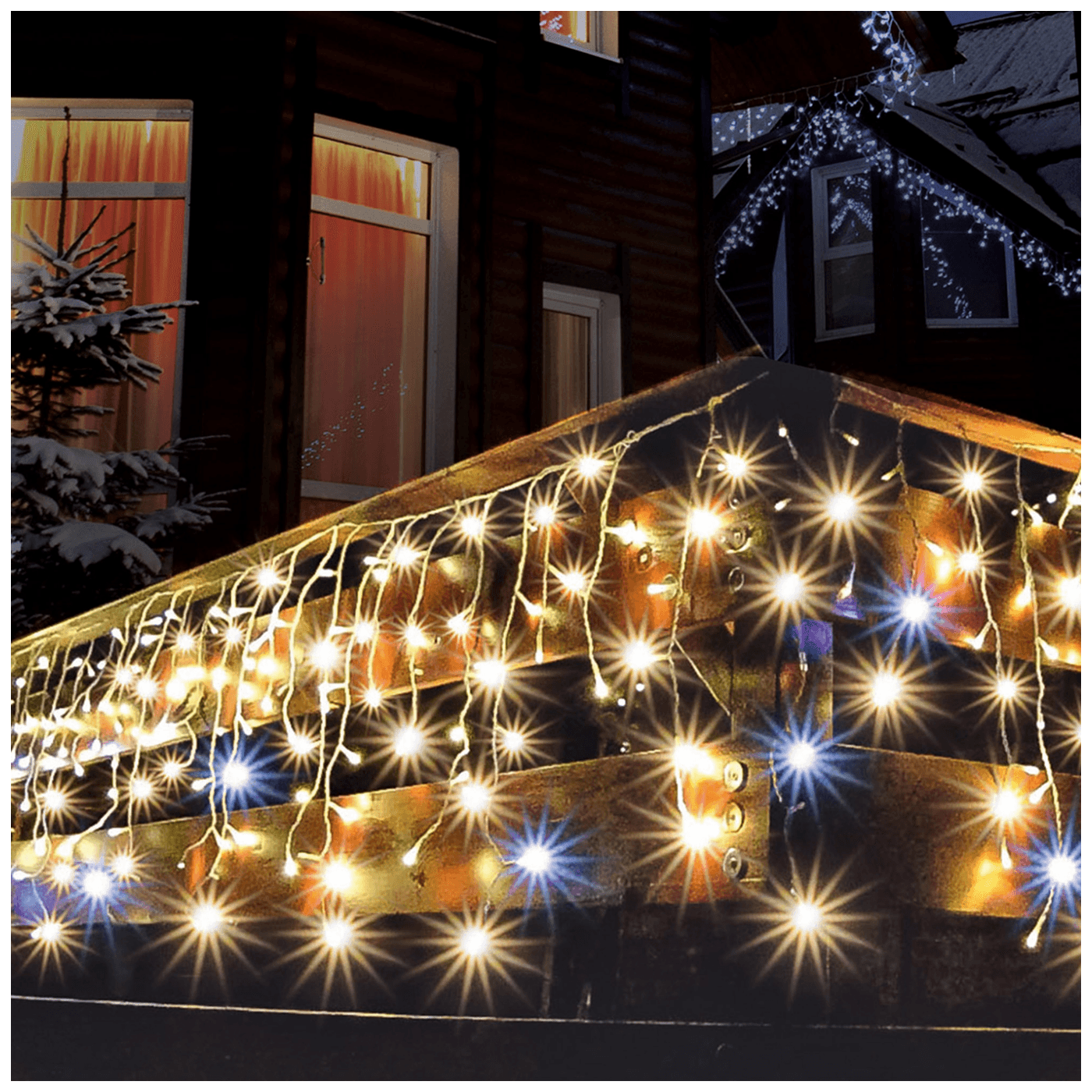 Dekorativna LED rasvjeta, za vanjsku i unutarnju upotrebu, 600 LED dioda, bijeli kabel dužine 10 met, boja svjetlosti toplo bijela, na svakom vijencu po jedna hladno bijela, napajanje 230 V / 24 V adapter