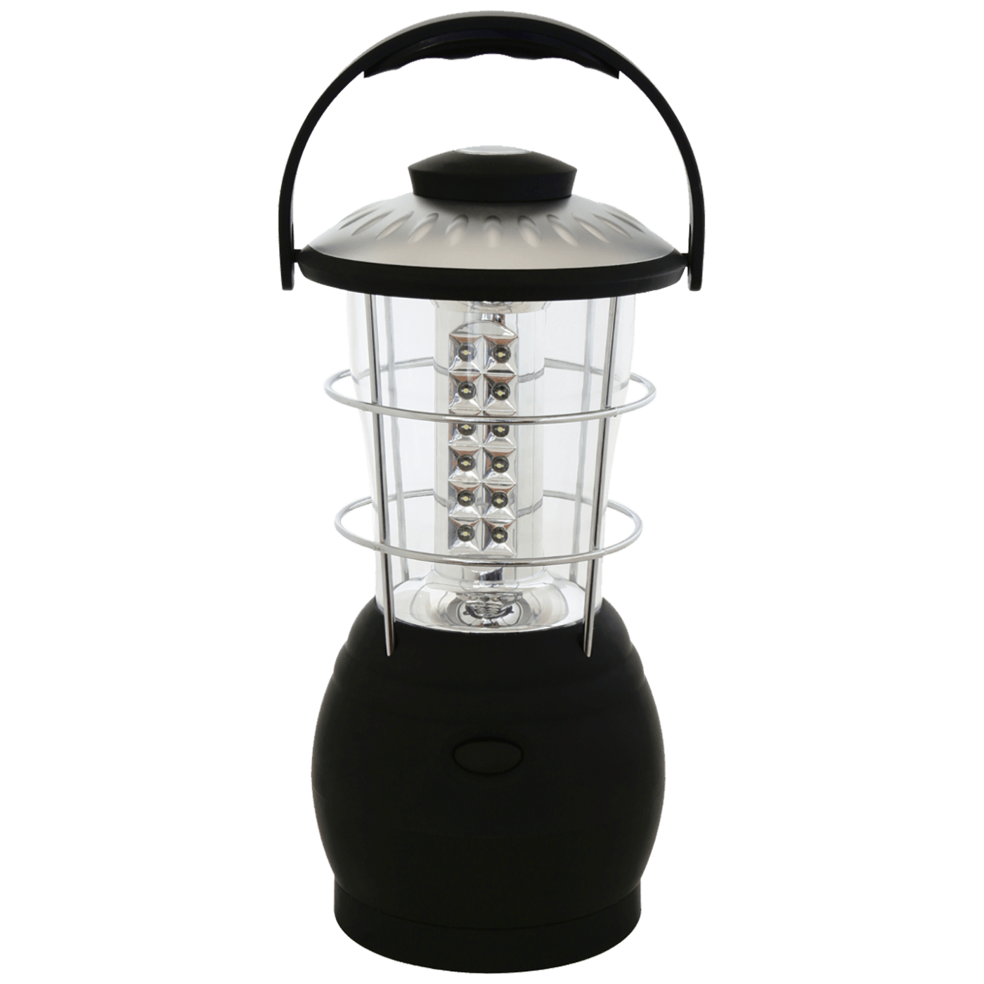 Akumulatotrska LED lampa za kampiranje, izvor svjetlosti bijelih 36 DIP LED dioda, osvjetljenje 60 lm, osvjetljenje u 2 nivoa 18 LED dioda ili 36 LED dioda, ugrađena baterija ( 3 x AA ), punjenje: dinama ili adapter, napajanje 230V ~ / 5V DC / 1A ( adapter uključen u pakiranje ), masivno kućište sa drškom za nošenje, dimenzije Ø 12.5 x 26 x 12.5 cm, IP54