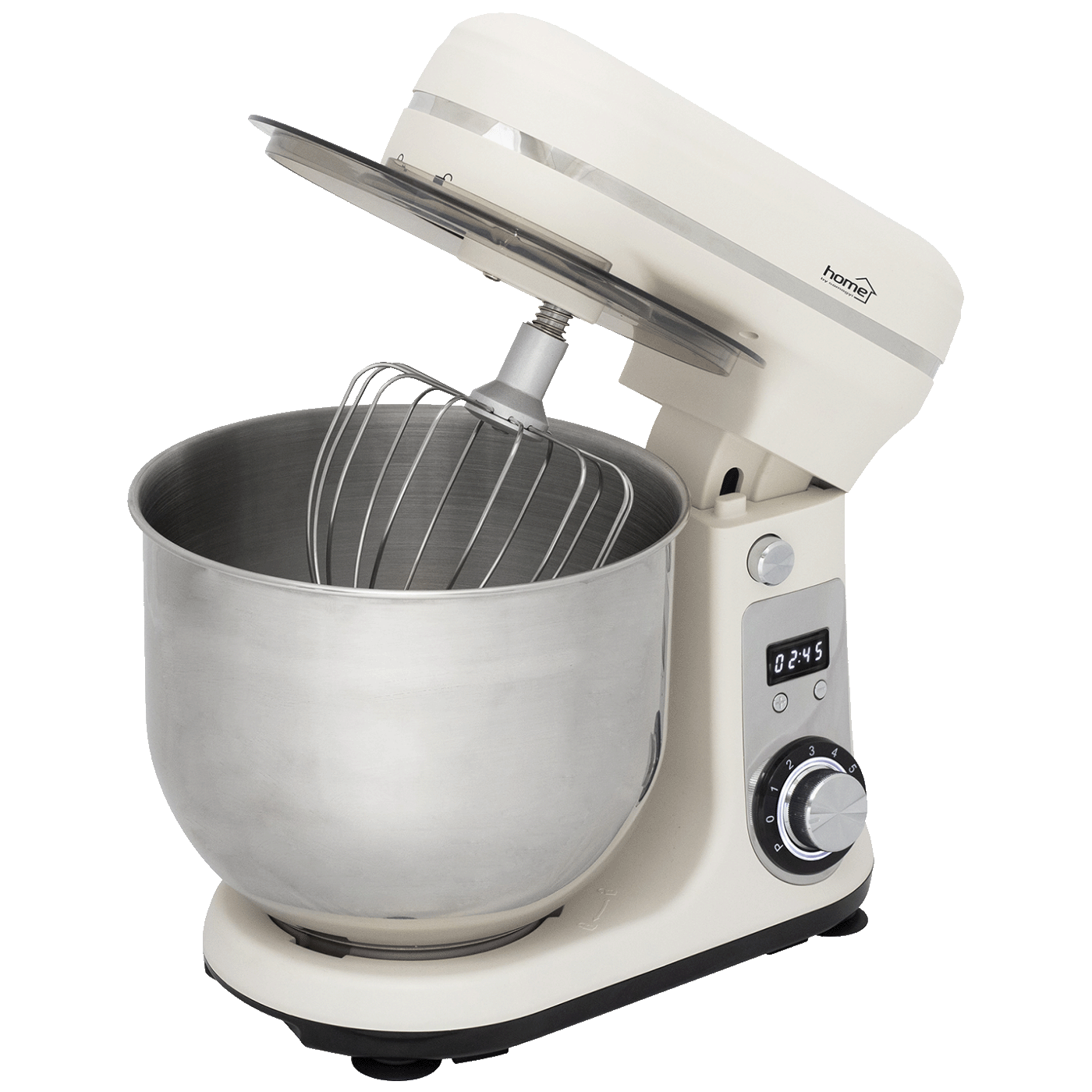 Ugodno na dodir visokokvalitetno plastično kućište ne samo da je estetski privlačno, već osigurava i dugotrajnost, dok glava za otvaranje omogućuje jednostavan pristup posudi za miješanje i priboru kao što su ruka za miješanje, pjenjača i mikser. Prozirni poklopac i otvor za punjenje omogućuju jednostavno dodavanje dodatnih sastojaka bez zaustavljanja stroja. Vakumske noge drže multipraktik stabilnim na ploči, tako da možete potpuno bezbrižno raditi, dok spremište za kabel održava vašu kuhinju urednom. Kuhinjski robot Home HGDG800 nije samo praktičan alat, već i pouzdan pomagač koji vas podržava u svakom koraku vaše kuhinjske kreativnosti.