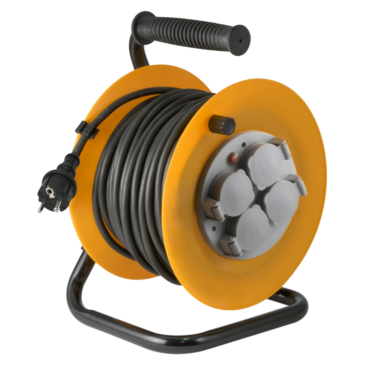 Motalica za kabel, HJR 10-30, kabel dužina 30 metara, gumirani kabel HO7RN-F, 3 x 1.5 mm², 4 utičnice sa uzemljenjem, utičnice zaštićene poklopcem, toplinska zaštita, gumb za reset gumb za reset toplinske zaštite, plastično kućište , ručka za lakše nošenje, 250V / max. 1000W u namotaju / 3000W razmotano, stupanj zaštite IP44