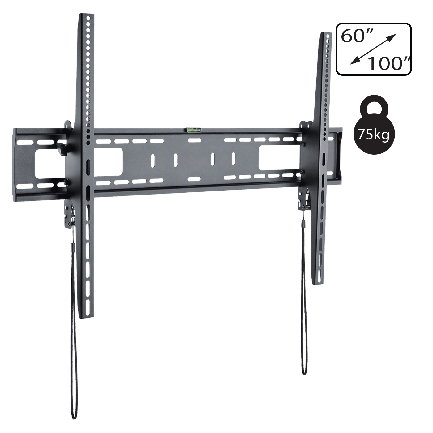Zidni nosač za TV prijemnike 60" – 100", maximalno opterećenja 75 kg, VESA 200 x 200, 300 x 200, 300 x 300, 400 x 200, 400 x 300, 400 x 400, 600 x 400, 600 x 600, 800 x 600, 900 x 600 mm, jednostavna montaža, fiksno pozicioniranje.
