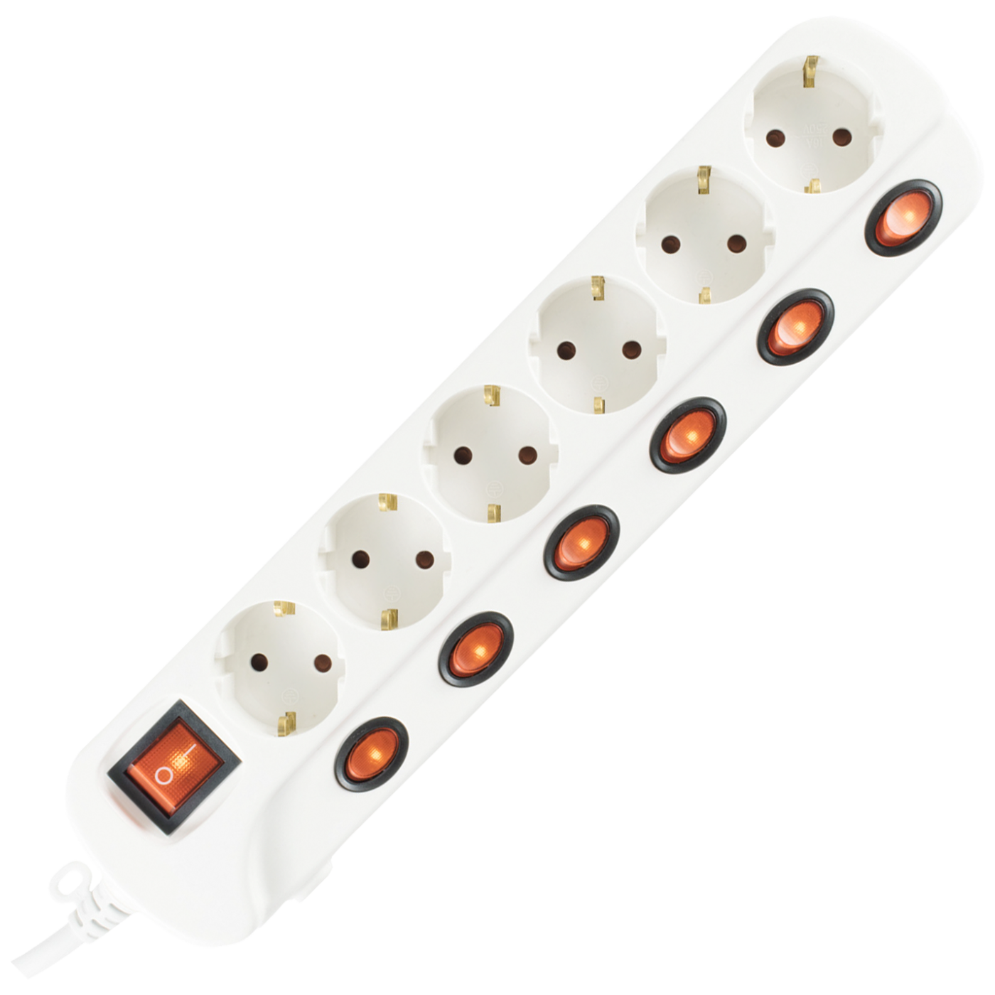 home Produžni kabl sa zaštitom, 6 utičnica, 1.0mm², 1.5 met – NVK 06K/WH