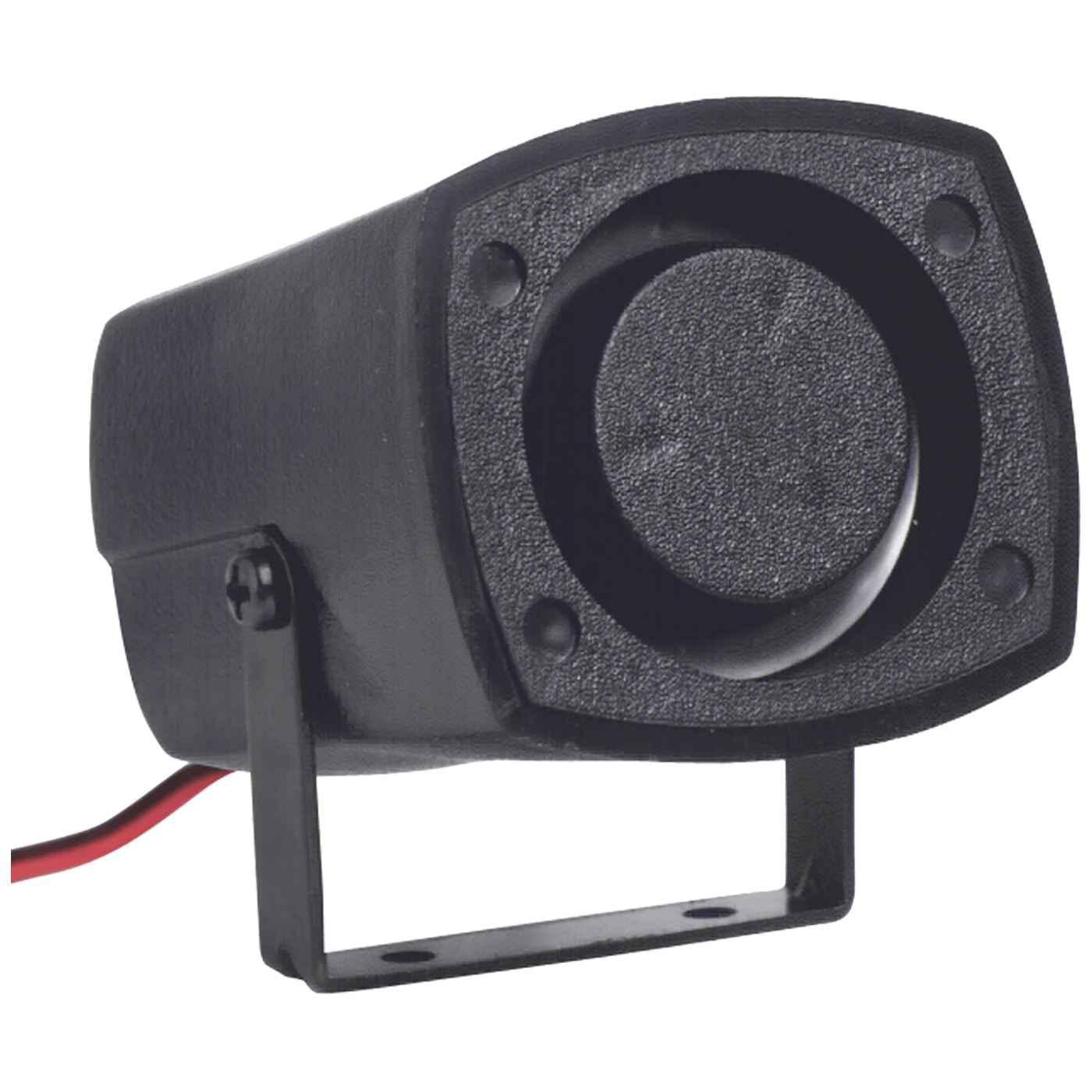 Sirena, 1-tonska velike glasnoće, za uporabu u domu ili automobilu, kompaktan dizajn, jednostavna montaža, snaga 20 W, jačina zvuka 100 dB, Piezo zvučnik, napajanje 6 – 16 V, dimenzije 45 x 40 x 104 mm, visina sa postoljem 57 mm