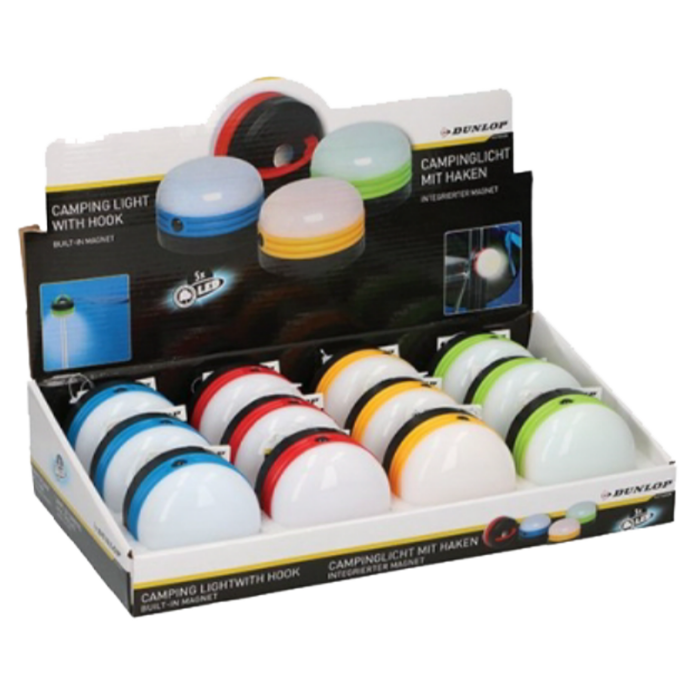 LED svjetiljka za kampiranje, napajanje 3 x AAA baterije, materijal izrade plastika, dostupna u crno / plavoj , crvenoj , zelenoj i žutoj boji, dimenzije 82 x 82 x 60mm