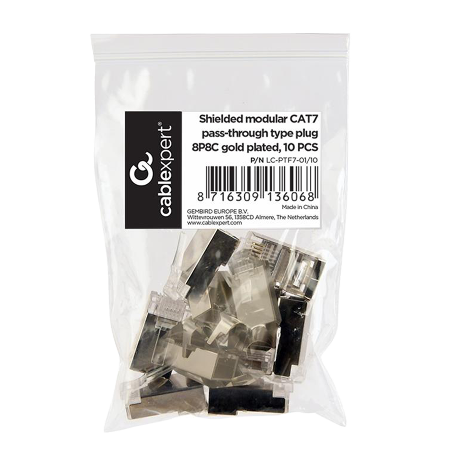 Konektor 10 komada GEMBIRD LC-PTF7-01/10, Shielded modular CAT7, pass-through type plug 15u” gold, plated
