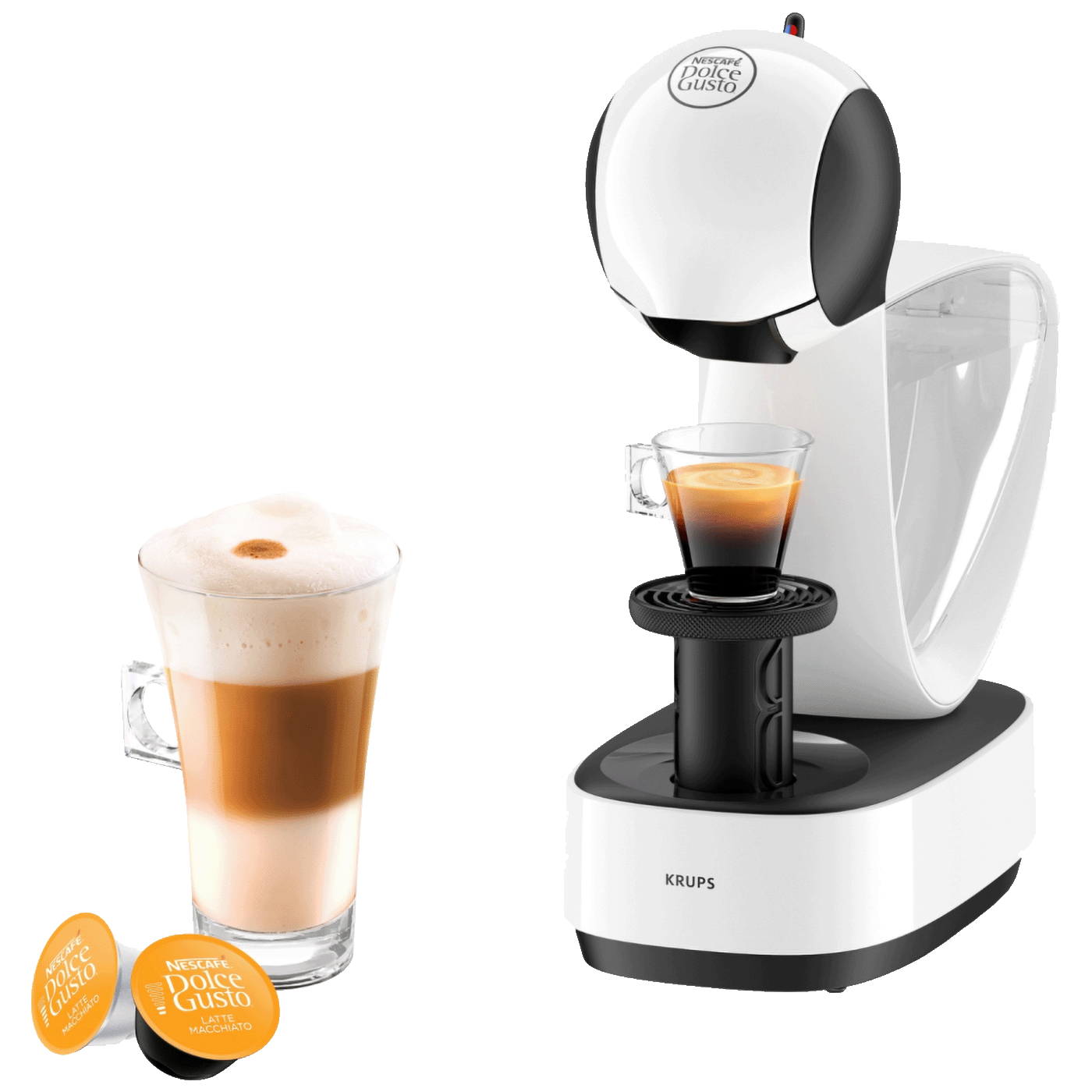S NESCAFÉ Dolce Gusto možete uživati ​​u više od 30 vrhunskih kreacija kafe, bez obzira želite li kratku ili dugu, crnu ili bijelu kafu. Uživajte u izboru hrabrog Ristretta, intenzivnog Espressa, aromatičnog Lunga i ukusnog Grande-a, pjenom Cappuccina i glatkog Latte Macchiata, ili se opredijeelite za vruću čokoladu, čajeve i hladne napitke.