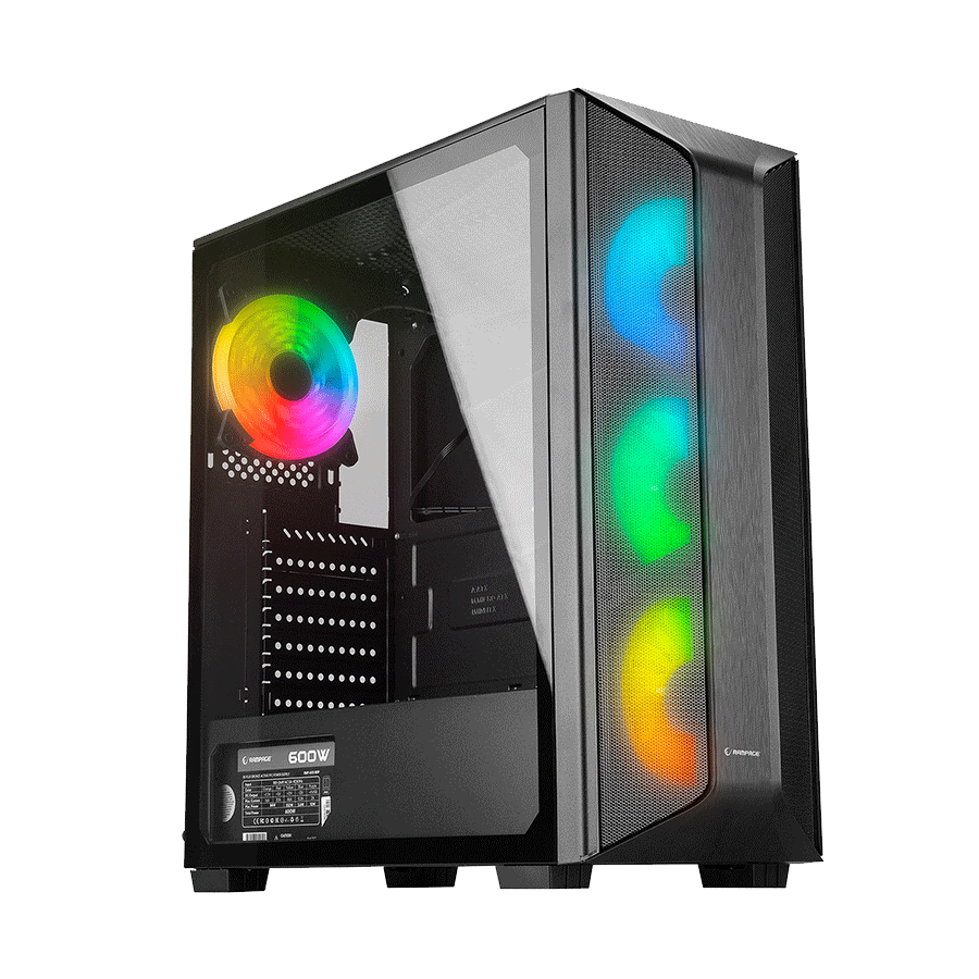Kućište gaming RAMPAGE HYDRA V2 BLACK Tempered Glass Type-C+USB3.0 4*ARGB Infinity Fan+Hub E-ATX Exclusive Gaming, 39989