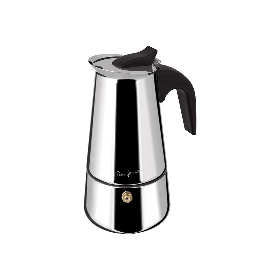 | Opis | Kuhalo za tradicionalno pripremanje talijanske espresso kave, izrađen od nehrđajućeg čelika visoke kvalitete 18/10. Stilski konični dizajn, ergonomična plastična ručka. Sigurnosni ventil. Proizvod s nadtlakom. Za 2 šalice. Koristite na svim grijačima, uključujući indukcijskim. |