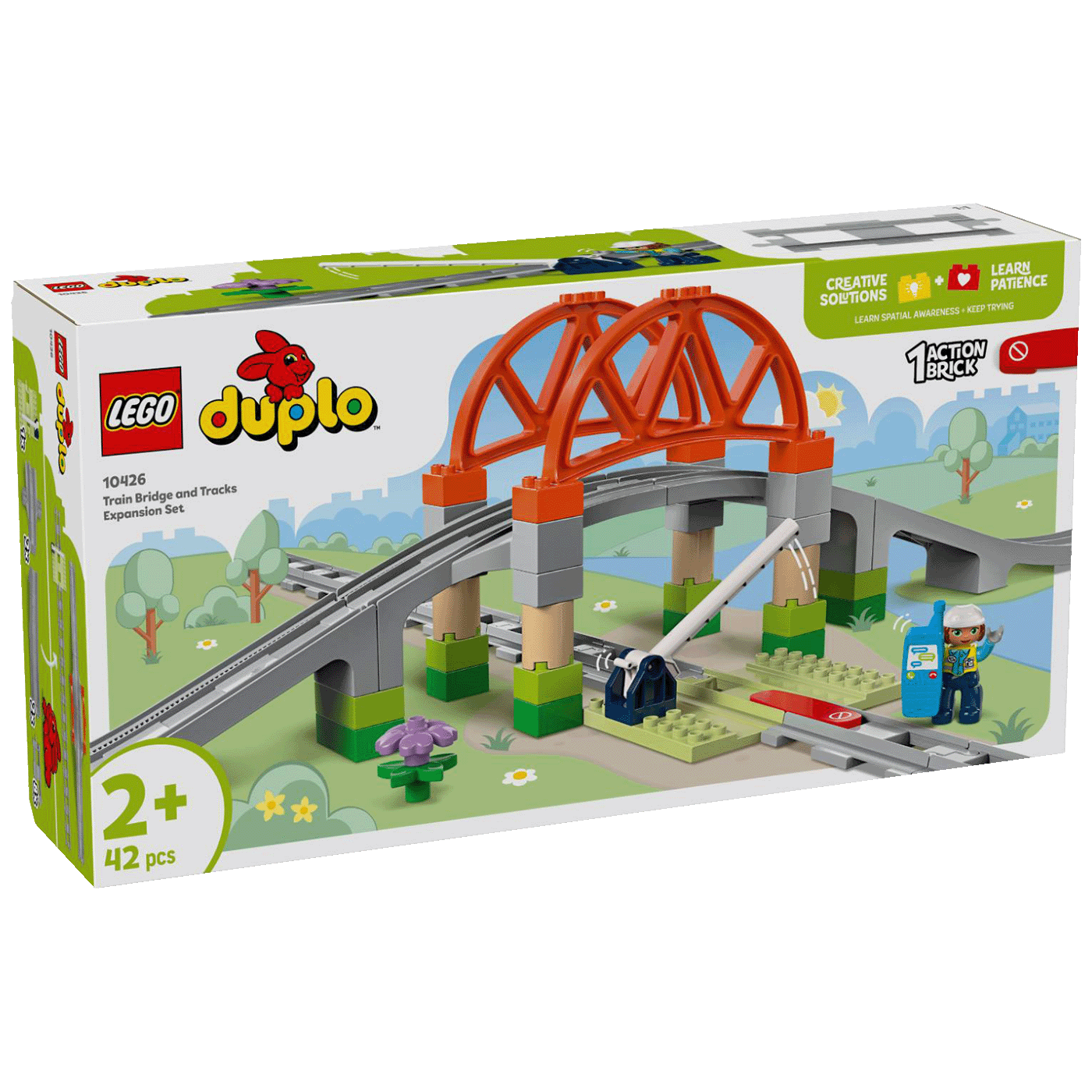 Uz kreativnu igračku za slaganje i preslagivanje mališani mogu dodati most interaktivnim željezničkim kompletima LEGO DUPLO Town (10427 i 10428, prodaju se zasebno) i iskoristiti 8 ravnih dijelova tračnica koje se mogu povezati sa svim željezničkim kompletima LEGO DUPLO te produljiti put.