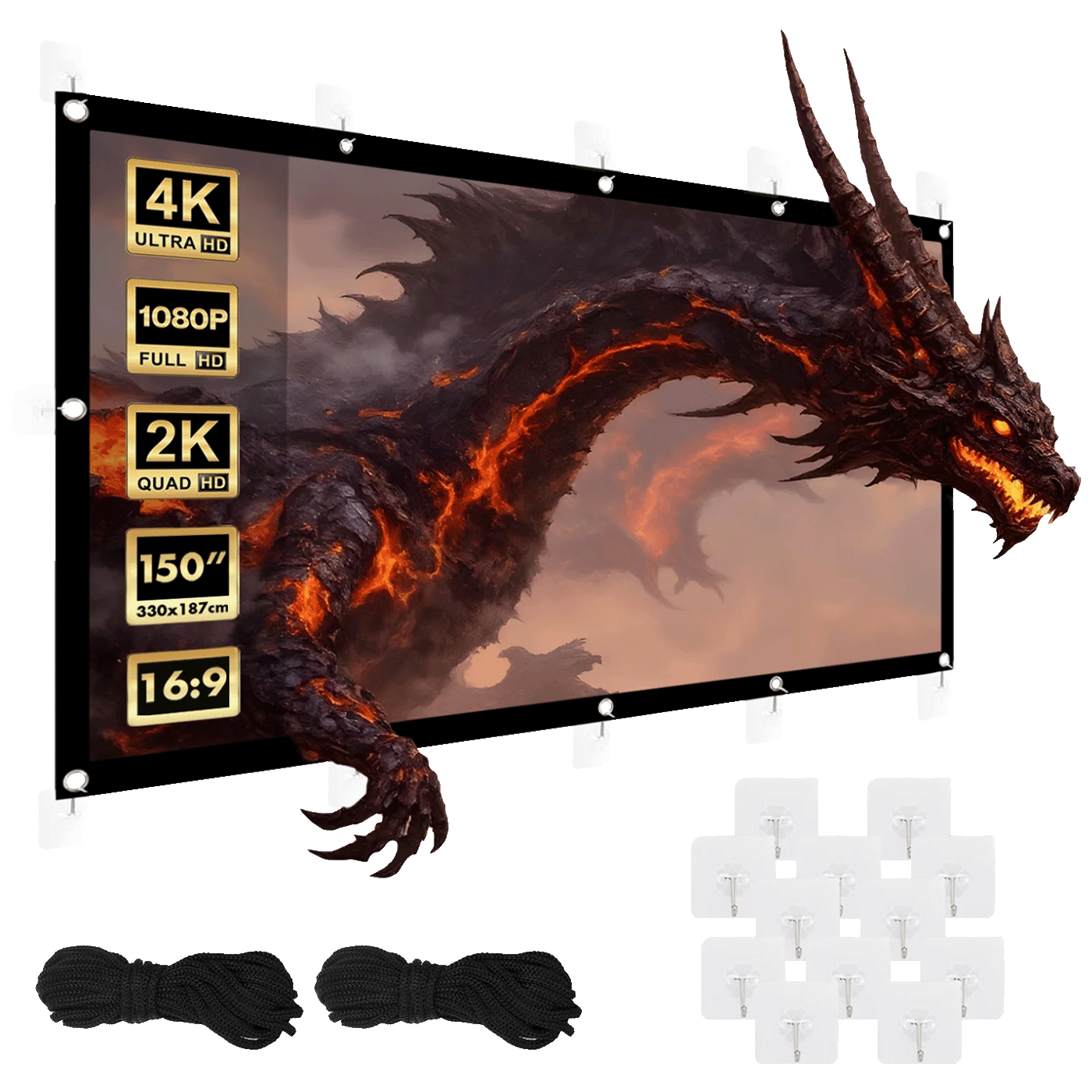 Zaslon je dizajniran za maksimalnu jednostavnost korištenja. Ugradnja je izuzetno jednostavna i brza – samo objesite platno na priložene ljepljive kuke ili ga pričvrstite kablovima. Zahvaljujući ovoj fleksibilnosti ugradnje, platno je idealno za korištenje kod kuće, kao i u uredu, konferencijskoj sali, školi ili čak i na sajmovima na otvorenom.