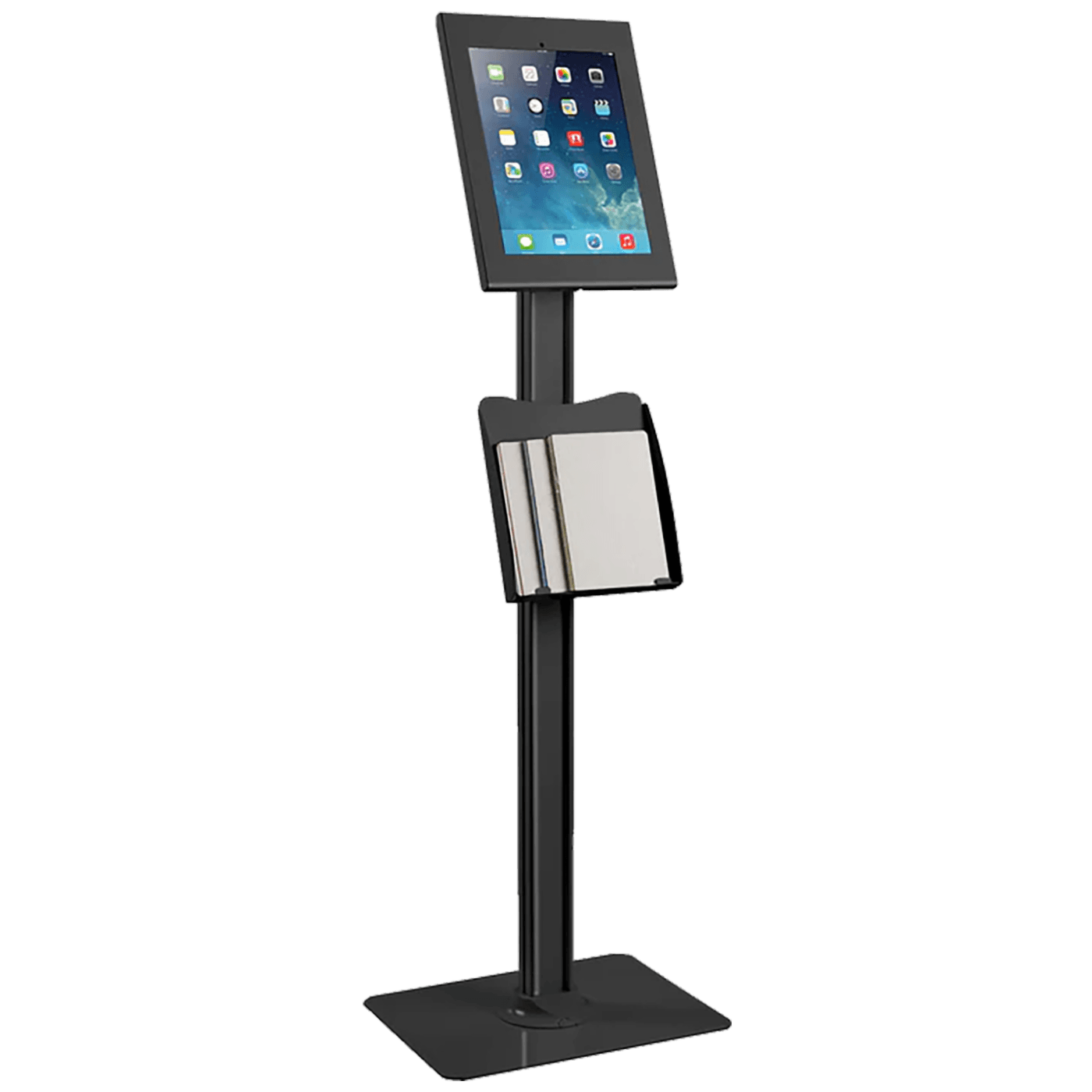 Postolje za tablete, iKiosk podni stalak, odlikuje se visokim kvalitetom izrade i čvrstom podlogom sa montažnim rupama, osiguravajući maksimalnu sigurnost uređaja koji se nalazi u njemu.