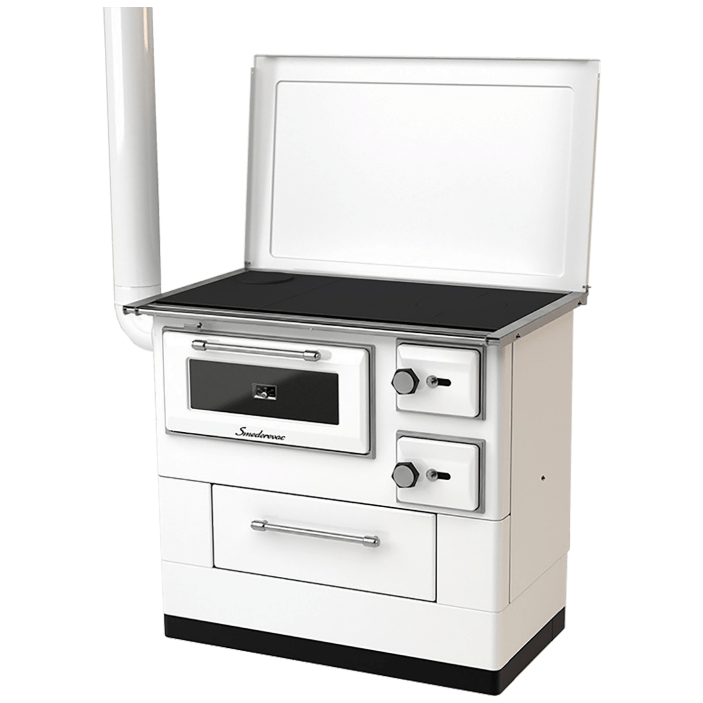 Štednjak na čvrsto gorivo, drvo i ugalj, snaga 11 kW, stepen iskorištenosti 85%, odvod dima Ø 120 mm, dimenzije ložišta 200 x 250 x 400 mm, dimenzije pećnice 490 x 200 x 460 mm, dimenzije šporeta 945 x 850 x 645 mm. Boja bijela