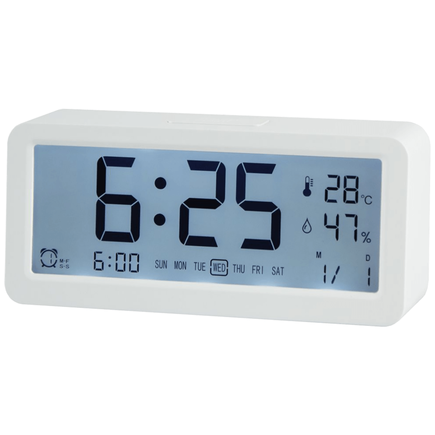 Sat sa alarmom meanIT A1 s tri alarma, a možete podesiti zasebno alarme za radne dane te alarm za vikend. Na ekranu s bijelim pozadinskim osvjetljenjem prikazuju se veliki brojevi tako da ćete ih vidjeti i s drugog kraja stana, ima alarm, termometar ali i mjerenje vlažnosti zraka u prostoriji. Odlična funkcionalnost bitna je za zimske mjesece kada se griju prostorije te tada postoji opasnost od smanjene vlažnosti zraka, što je opasno za zdravlje. Za napajanje se koriste dvije AA baterije.