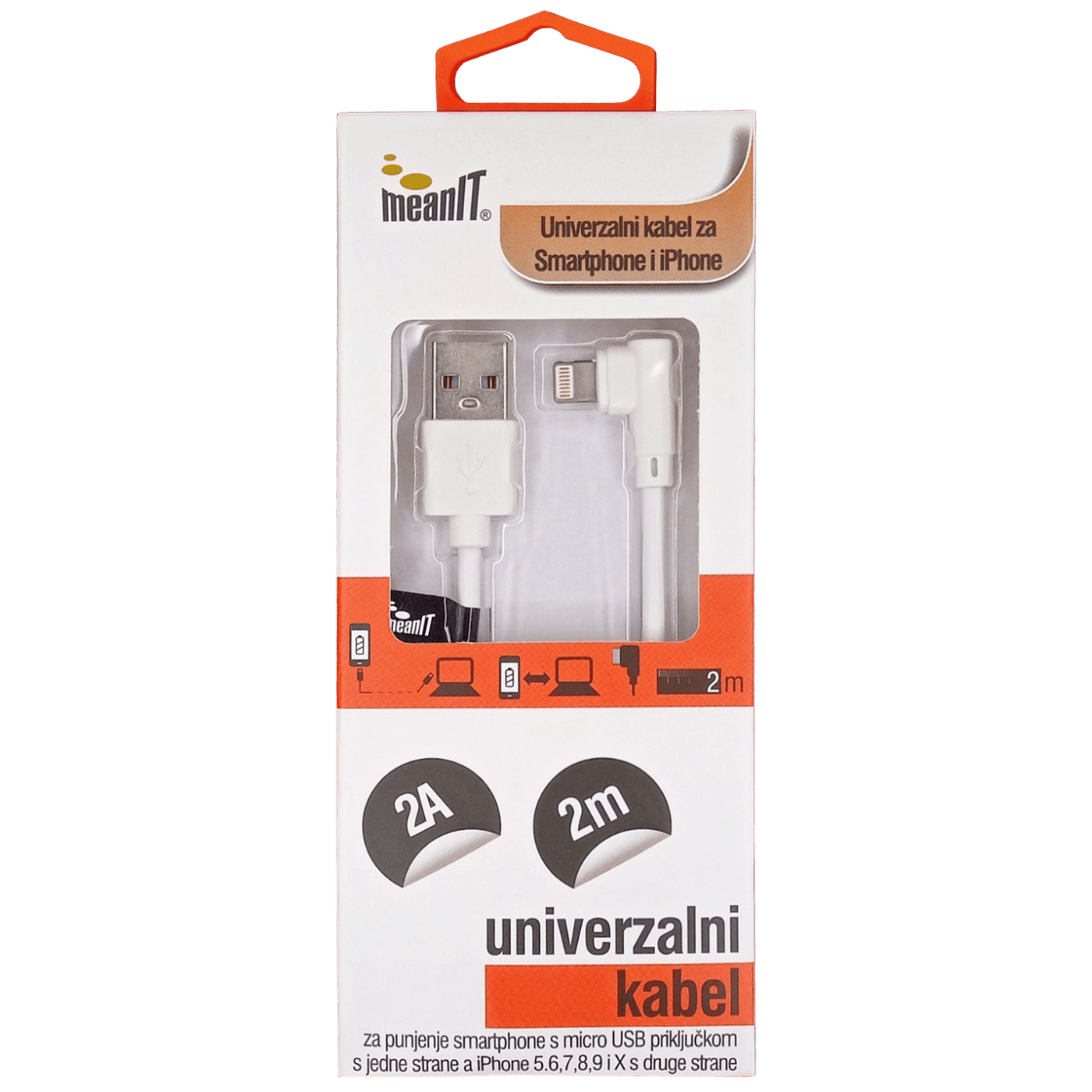 Univerzalni kabel za punjenje i prijenos podataka za Smartphone i iPhone ( iPhone 5 / 6 / 7 ), FLIP konektor ( mogućnost spajanja sa bilo koje strane ), dužina 2 met, 1A