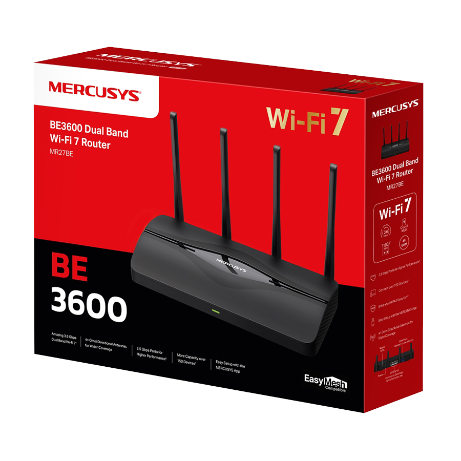 Mercusys MR27BE BE3600 Dual-Band Wi-Fi 7 Router, 2.4 GHz + 5 GHz, 4×Ant