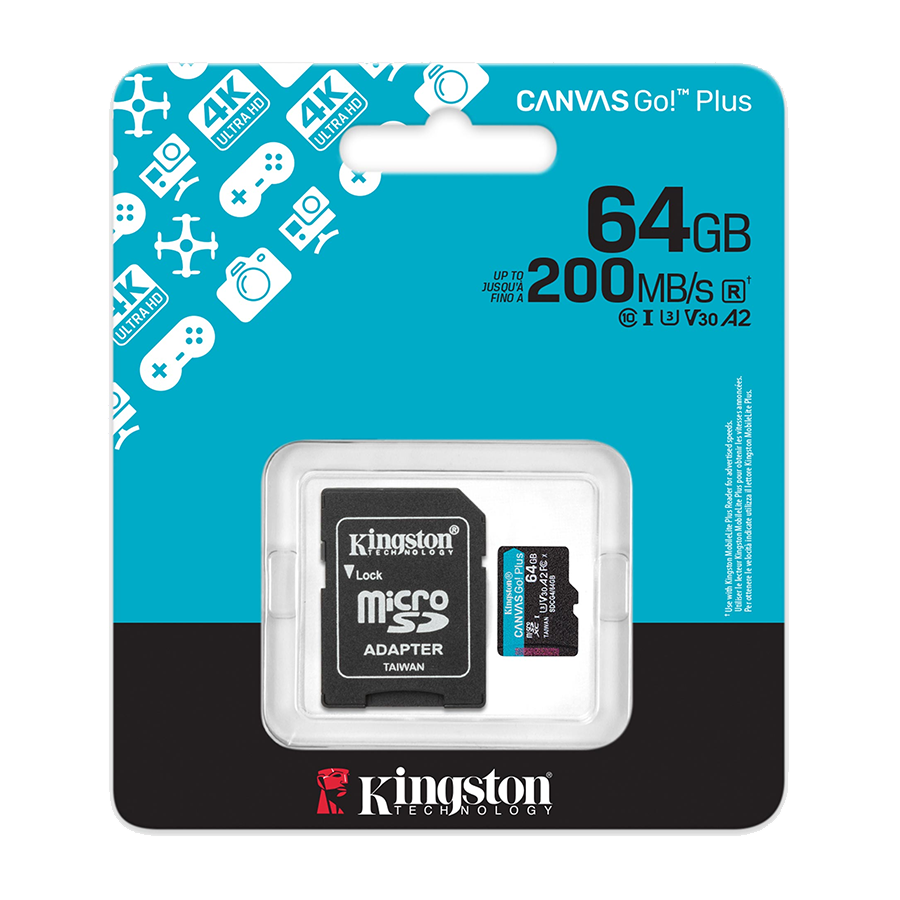 Micro SDXC card Kingston 64GB Canvas GoPlus Gen.4 200MB/s A2 U3 V30 Card + Adapter SDCG4/64GB