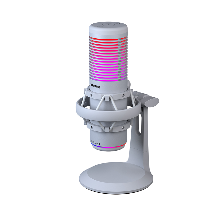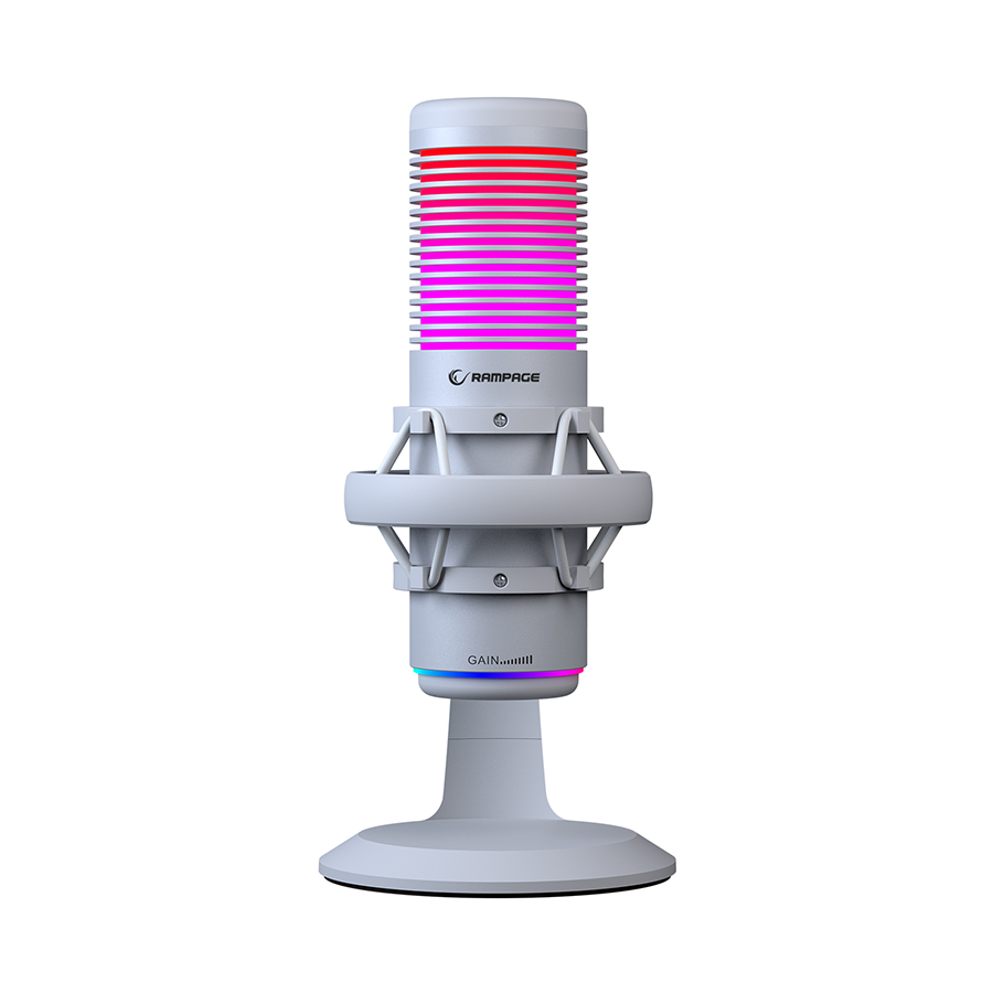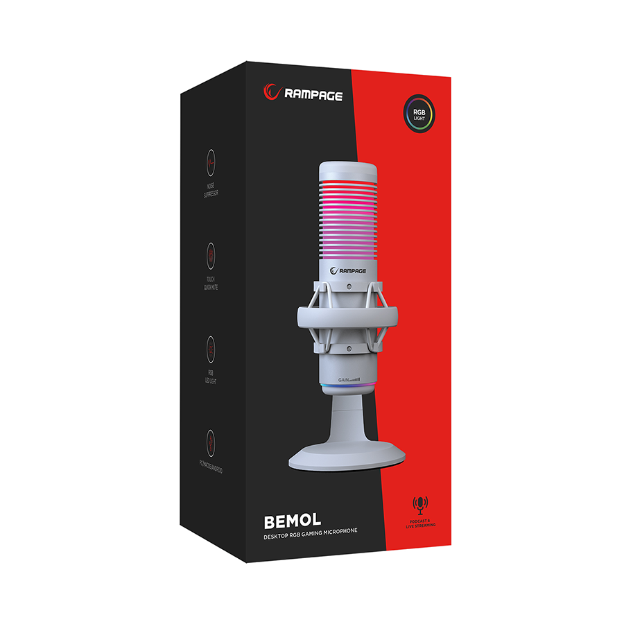Mikrofon gaming RAMPAGE BEMOL RGB White Microphone with Shock Mount and Pop Filter for Gaming, Streaming, Podcasts, 41148