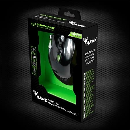 Miš ESPERANZA GAMING HAWK 7D MX401, BLACK-GREEN, 2400dpi, double-click, ergonomic, EGM401KG