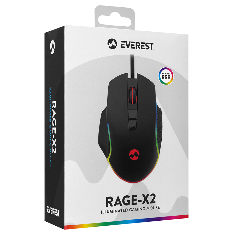 Miš gaming Everest Everest RAGE-X2 Usb Black 800/1600/3200/4800/6400 DPI,, 7D, Sunplus 199 Gaming Mouse, 35122