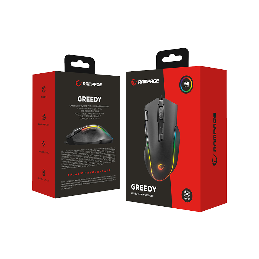 Miš gaming RAMPAGE SMX-G72 GREEDY 8 KEYS, Double Click Real RGB Backlit,Macro Programable, 33362