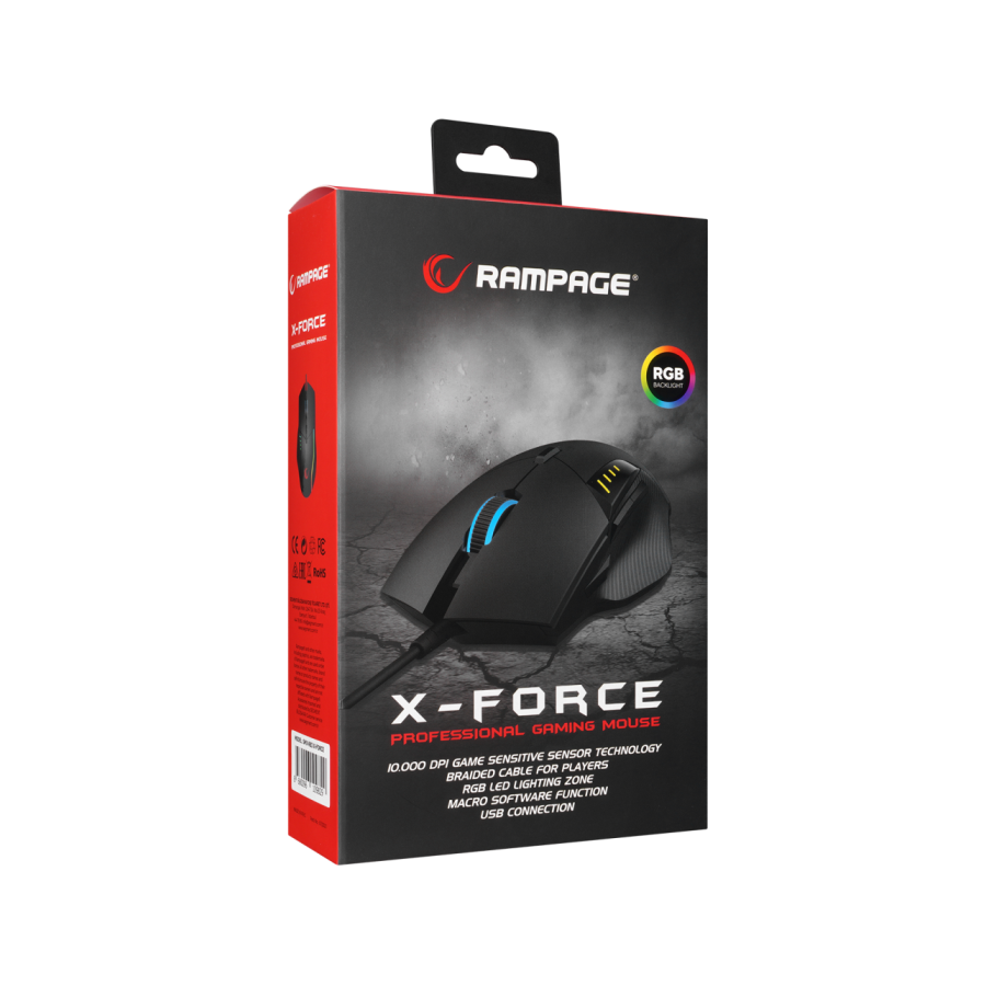 Miš gaming RAMPAGE SMX-R83 X-FORCE black, USB, 10000dpi, RGB