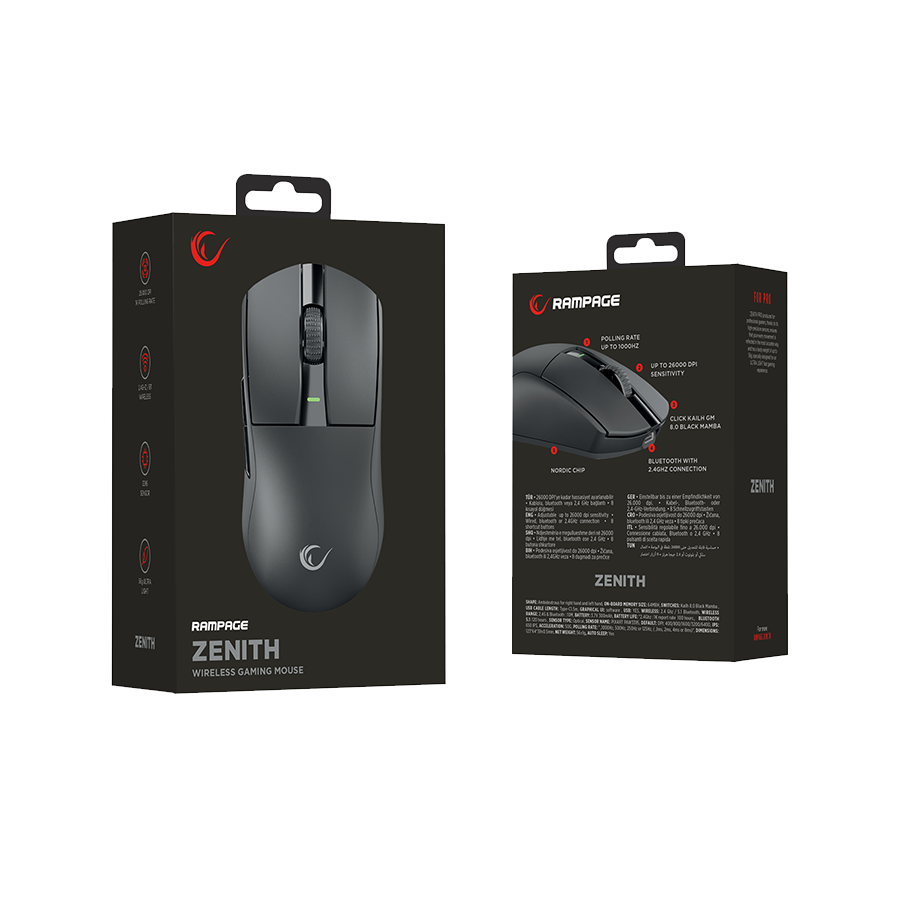 Budi prvi koji će recenzirati “Miš gaming RAMPAGE Zenith Bt Wired 2.4g Black Wireless Paw3395 Nordic 52833 MCU, 41653”