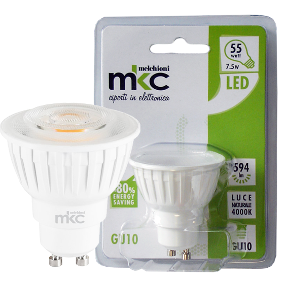 Žarulja, LED 7.5W potrošnja – ekvivalent 55W žarulje, GU10, 594 Lm, snop svjetlosti 100°, 4000K prirodna bijela svjetlost, energetska ušteda do 86%. Idealna za domove, urede itd….. Napajanje 220 / 230V AC