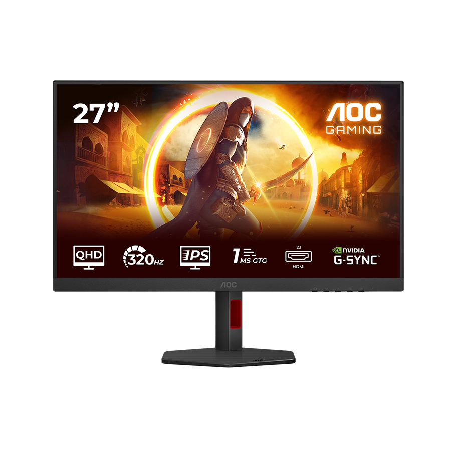 AOC Monitor Gaming Q27G4SRU 27”, QHD (2560×1440), Fast IPS, 320Hz, 0.3ms MPRT (1ms GtG), 450 cd/m2, 1000:1, Adaptive Sync, G-Sync Compatible, HDR400, USB hub, 2x HDMI 2.1, 1x DP 1.4, Speakers, Full Ergo