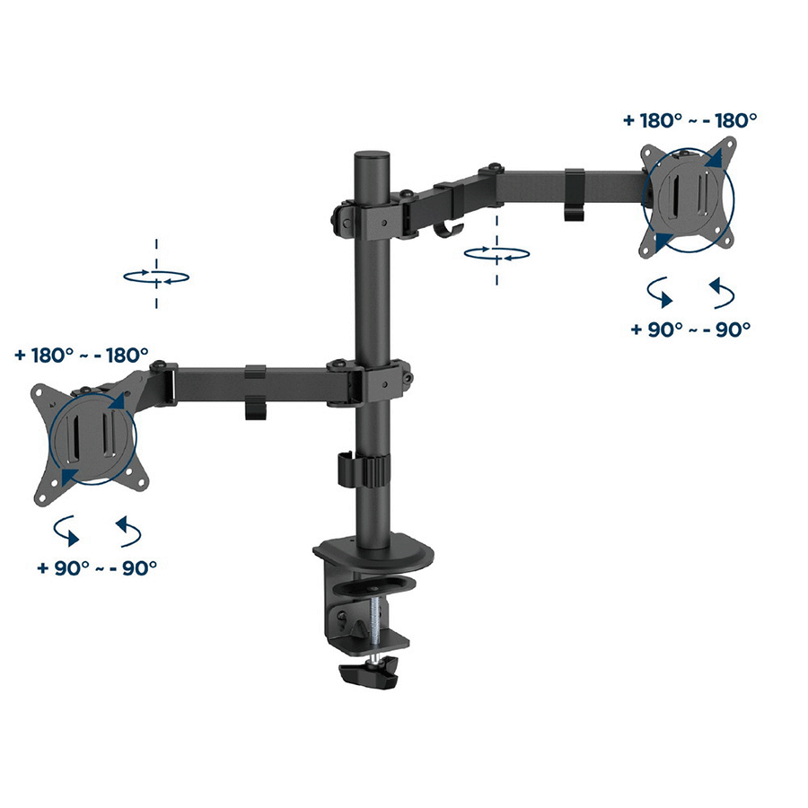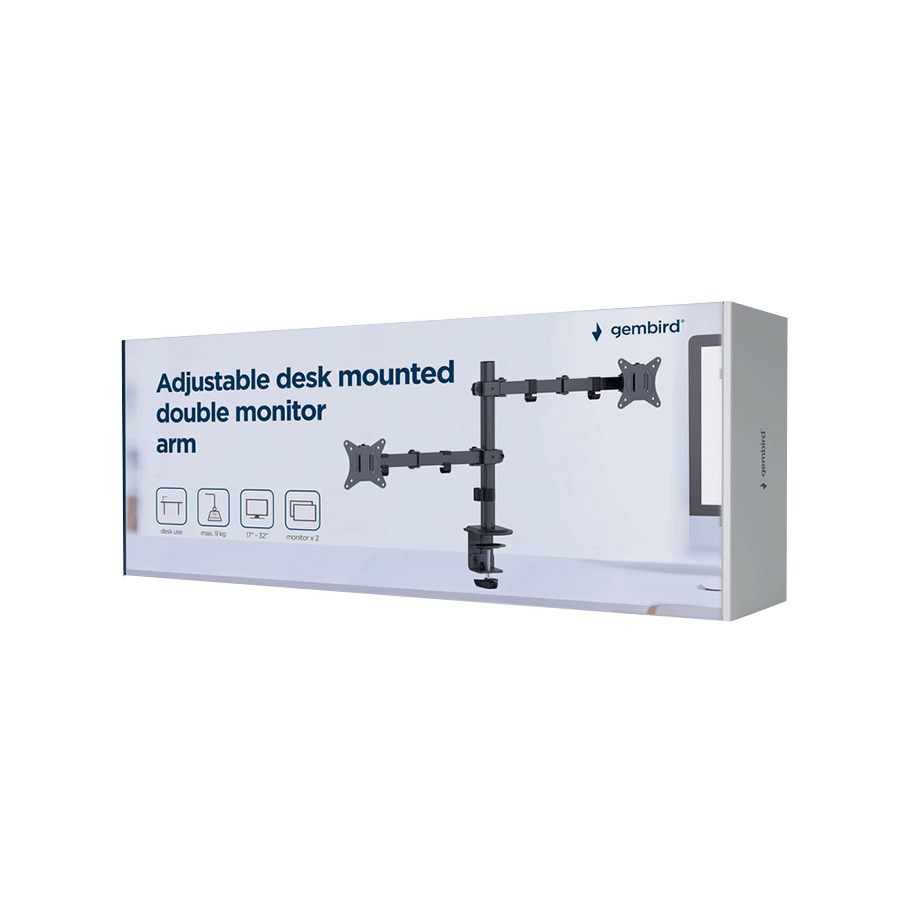 NOSAČ ZA DVA MONITORA GEMBIRD MA-D2-03, montaža na stol, tilt, swivel), 17”-32”, up to 9 kg