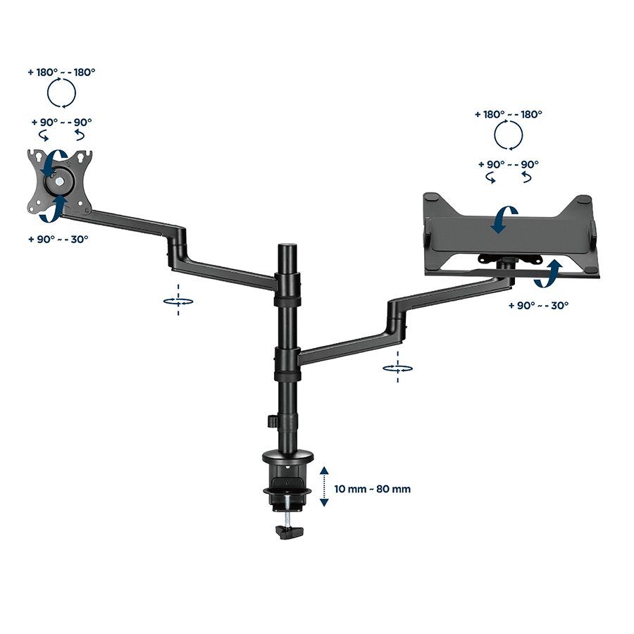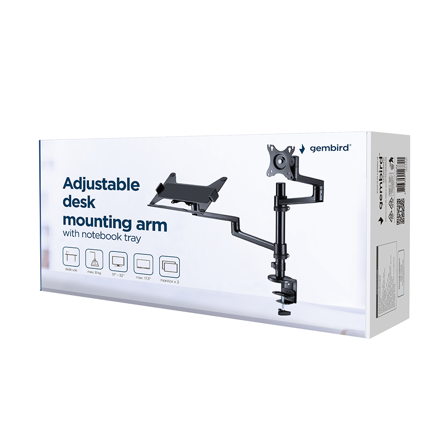 NOSAČ ZA MONITOR I LAPTOP GEMBIRD MA-DA-04, montaža na stol, monitors up to 32” and notebooks up to 17,3”