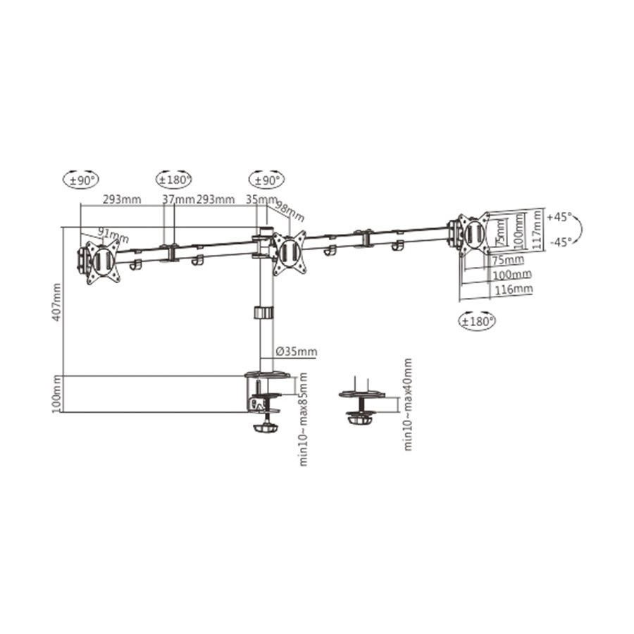 NOSAČ ZA TRI MONITORA GEMBIRD MA-D3-01, montaža na sto, (rotate, tilt, swivel), 17”-27”, up to 7 kg
