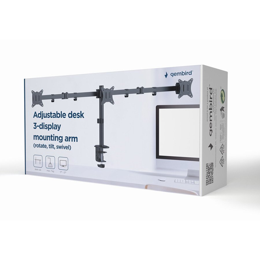 NOSAČ ZA TRI MONITORA GEMBIRD MA-D3-01, montaža na stol, (rotate, tilt, swivel), 17”-27”, up to 7 kg