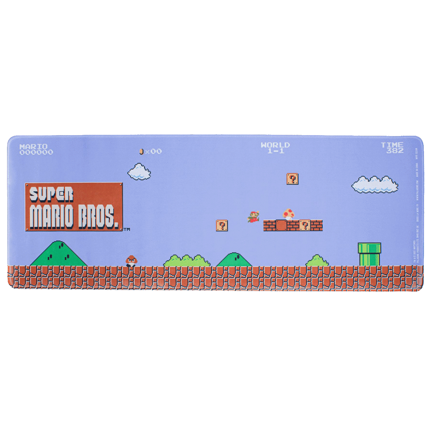 Dimenzija 30 x 80 cm (12" x 31"), Super Mario Bros Desk Mat je ilustrovan šarenom pozadinom World 1-1, tako da možete da se osećate kao da igrate nivo pomijeranja sa strane tokom cijelog radnog vremena!