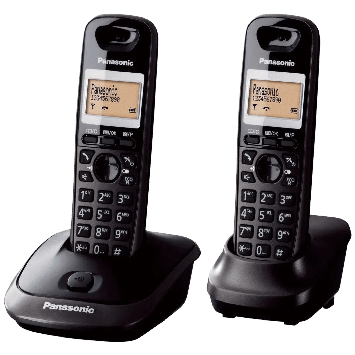 Bežični telefon KX-TG2512 sa 2 slušalice i 1 bazu s ugrađenim punjačem.