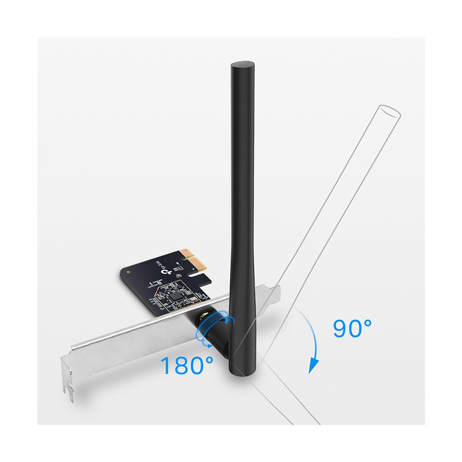 TP-Link Archer T2E AC600 Dual Band Wi-Fi PCI Express Adapter, 433 Mbps at 5 GHz + 200 Mbps at 2.4 GHz, 1× High Gain External Antenna, MU-MIMO, WPA3, Low-Profile and Full-height brackets