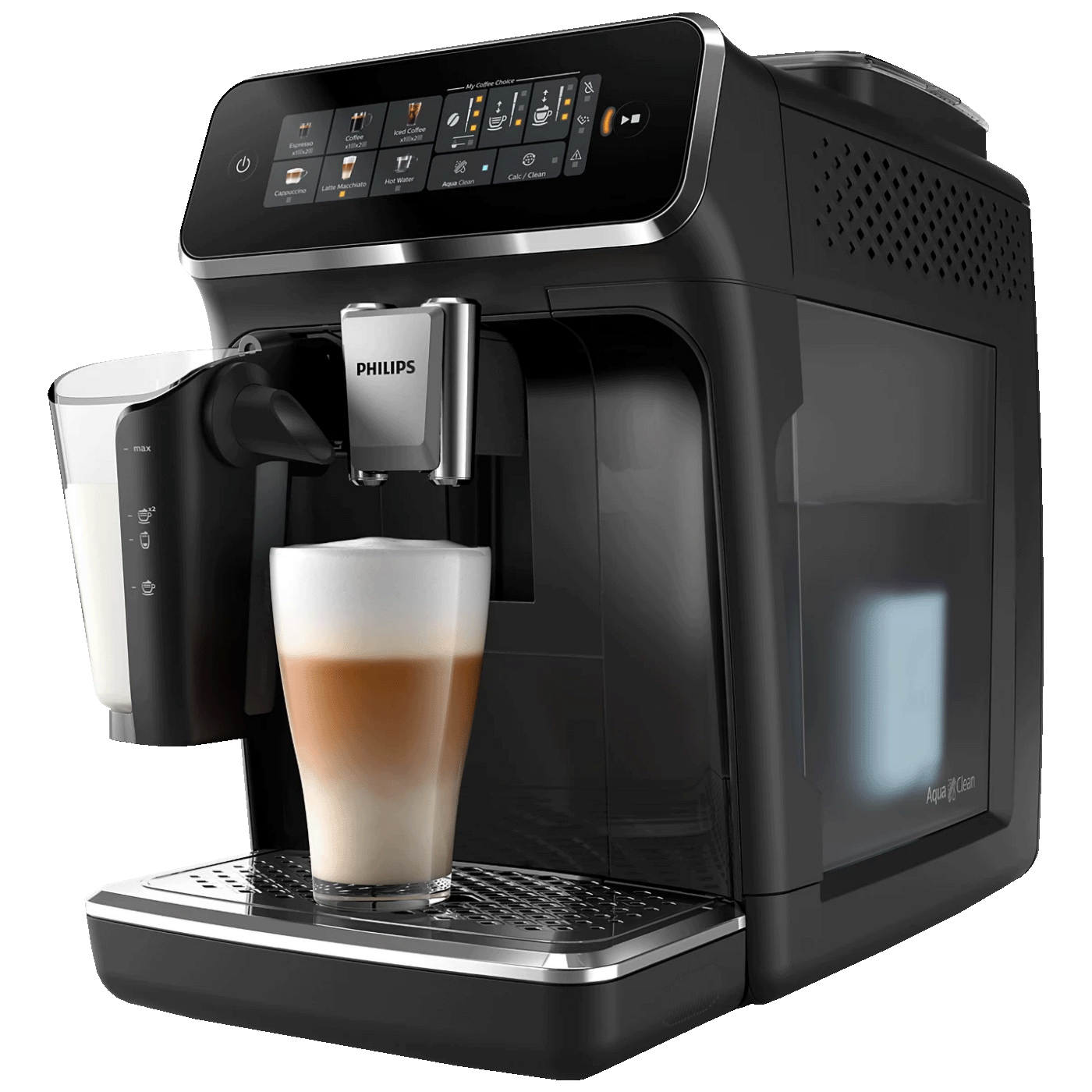 Philips EP3341/50 iz Serije 3300 je potpuno automatski espresso aparat koji omogućava jednostavnu pripremu do 6 različitih napitaka jednim dodirom – uključujući espresso, običnu kavu, cappuccino, latte macchiato, ledenu kavu i vruću vodu za čaj, uz savršenu kremastu pjenu i aromu. Uređaj koristi sustav LatteGo za automatsko stvaranje glatke mliječne pjene, a ovaj sustav se vrlo brzo i jednostavno čisti bez cijevi. Patentirana SilentBrew tehnologija smanjuje buku tijekom pripreme kave, dok AquaClean filter omogućava do 5000 šoljica pripreme bez uklanjanja kamenca kada se filter zamijeni prema uputama. Izdržljivi keramički mlinac s 12 postavki mljevenja poboljšava pun okus zrna, a intuitivni touch screen zaslon olakšava odabir i personalizaciju pića.